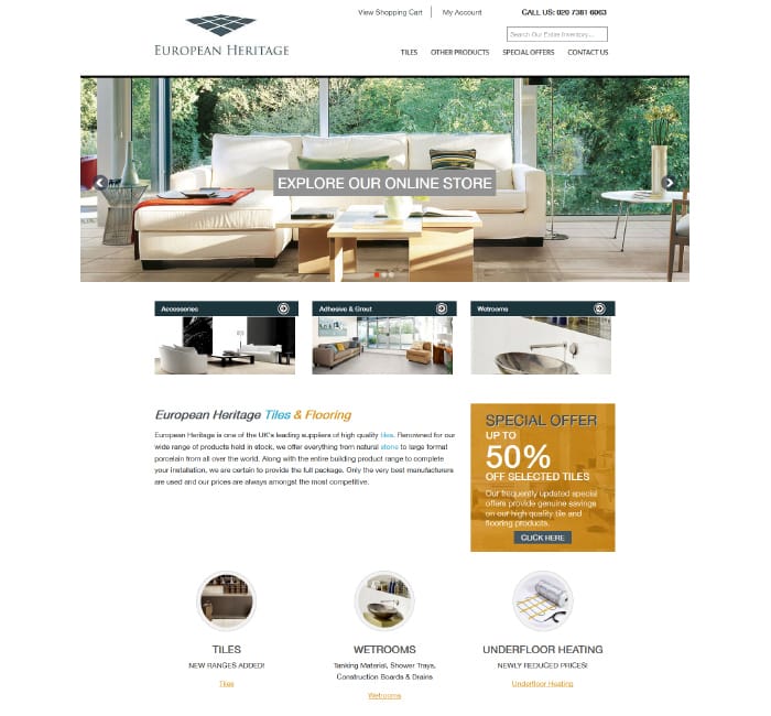 European heritage uses white space very wisely. It emphasizes all categories and logo. In the center of the page, there are several colored sections that lead to important pieces of information. While scrolling down, you can notice that whitespace still dominates, but the focus still is on other sections.